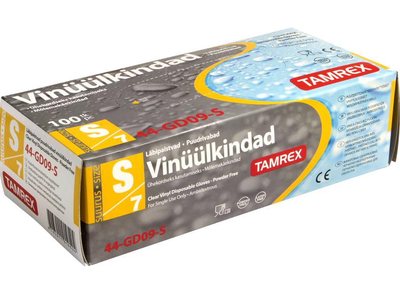 Kvaliteetsed puudri- ja lateksivabad ühekordsed vinüülkindad sobivad kasutamiseks toiduainetööstuses. Minimaalne allergia risk. AQL 1,5. Värv: läbipaistev.